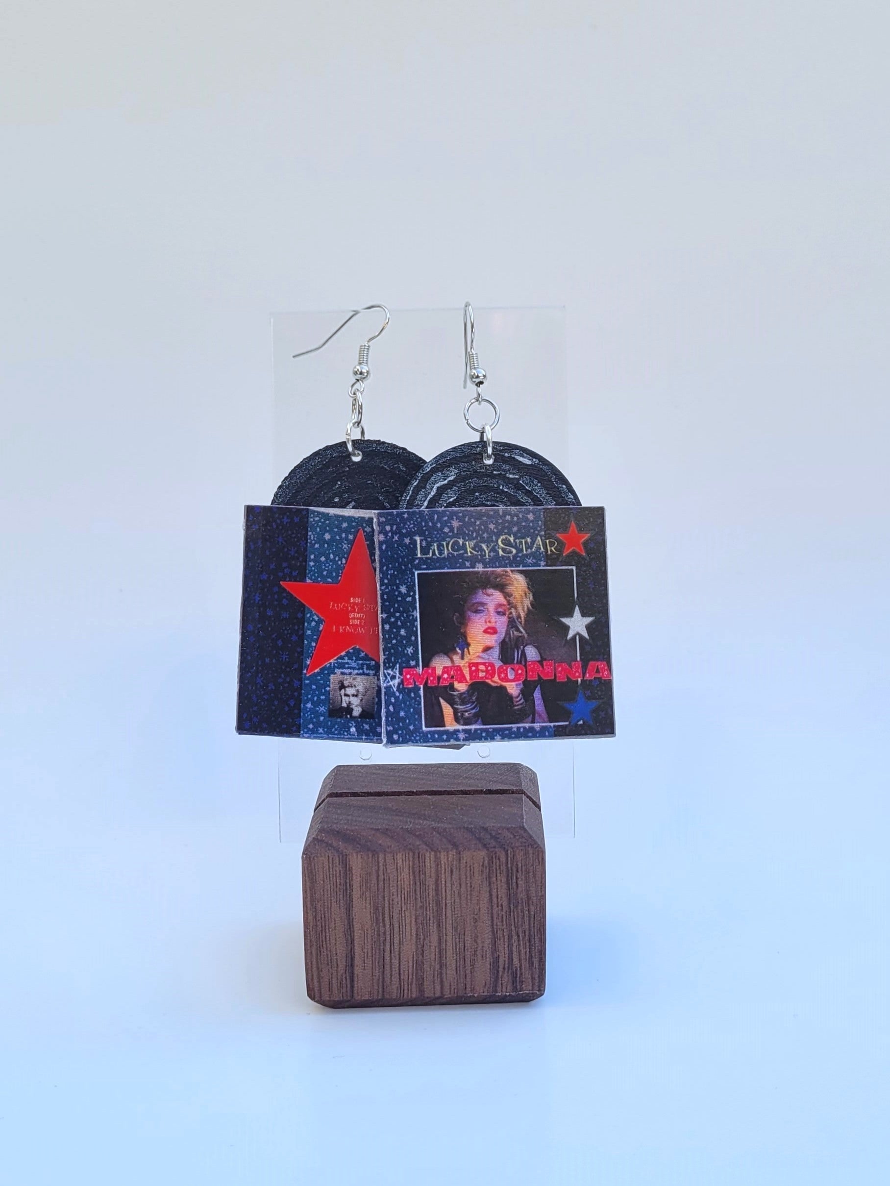 Our sleeves are made with thick glossy card stock. Records made of painted wooden discs make this pair lightweight and easy on your ears! Each record is hand painted and variation is to be expected. Record sleeve dimensions : 1.5 inch by 1.5 inch