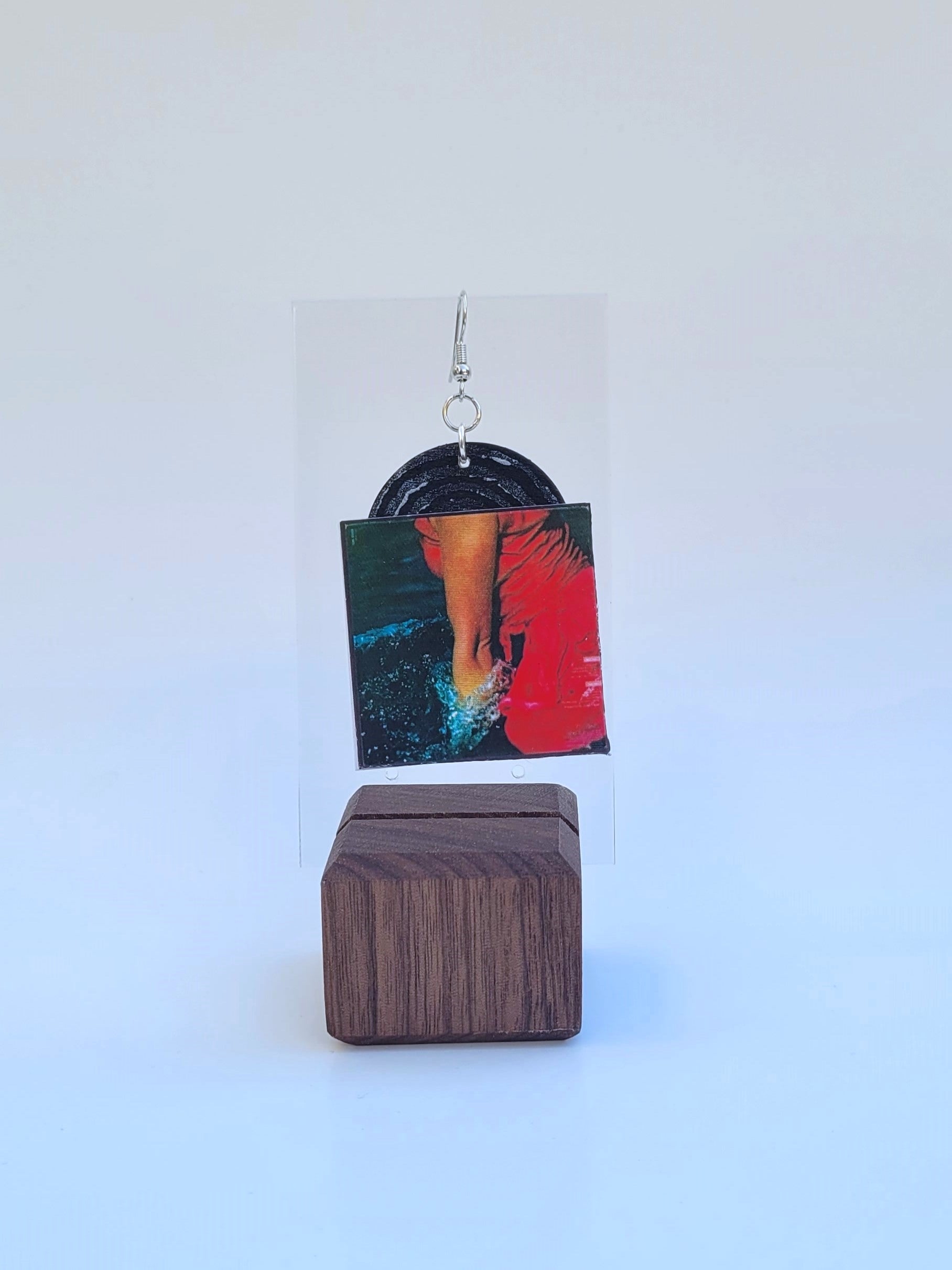 Our sleeves are made with thick glossy card stock. Records made of painted wooden discs make this pair lightweight and easy on your ears! Each record is hand painted and variation is to be expected. Record sleeve dimensions : 1.5 inch by 1.5 inch