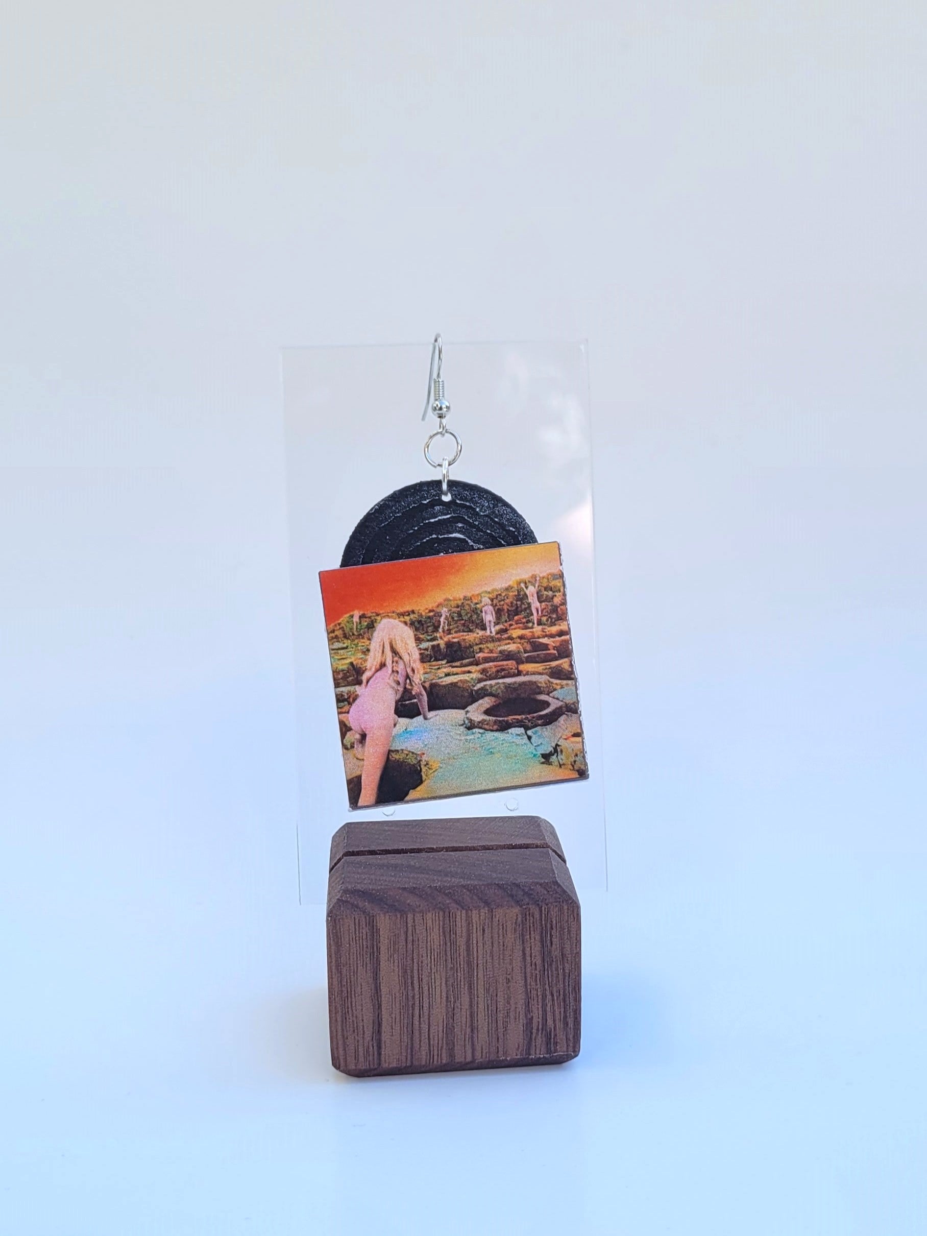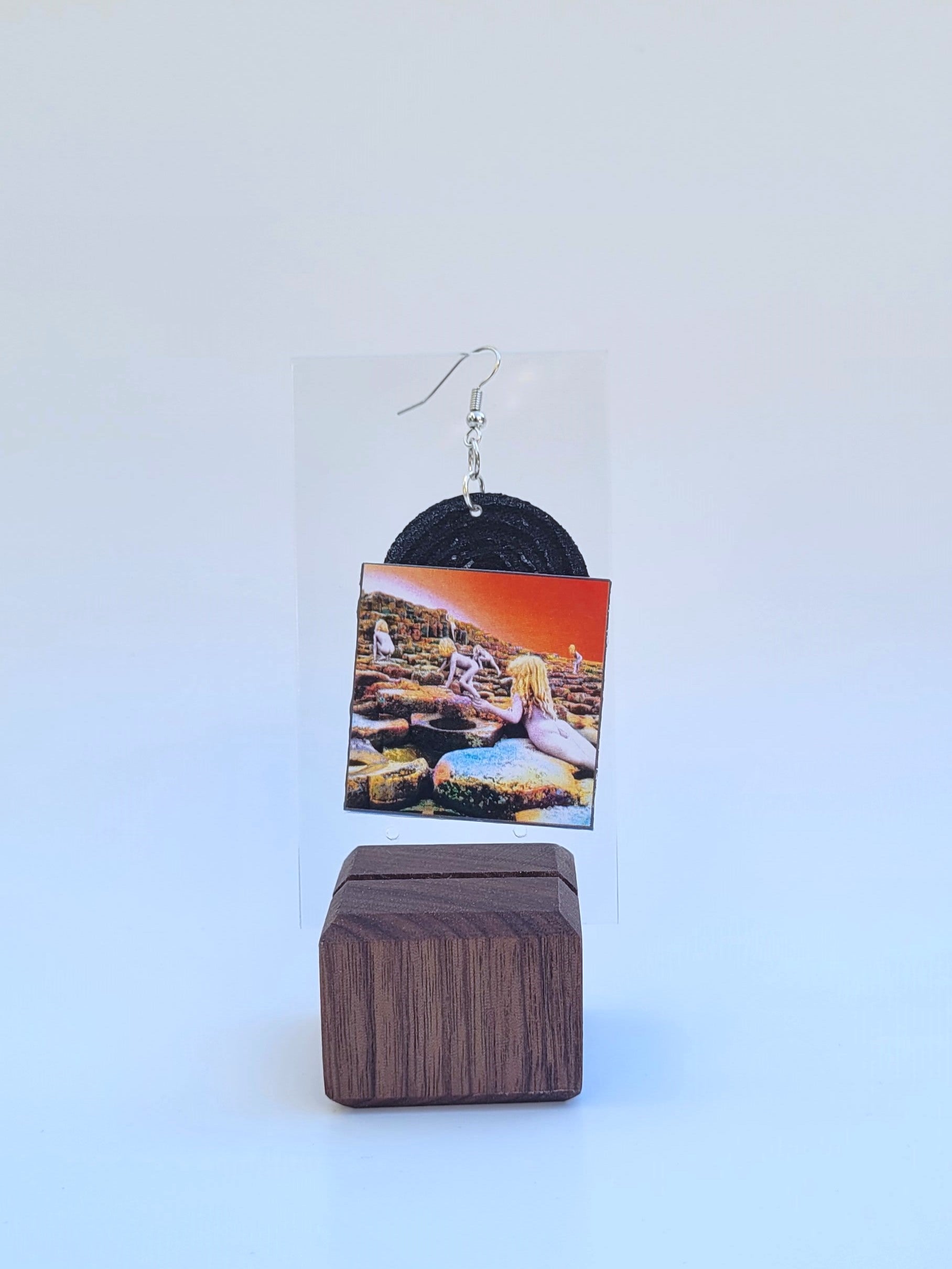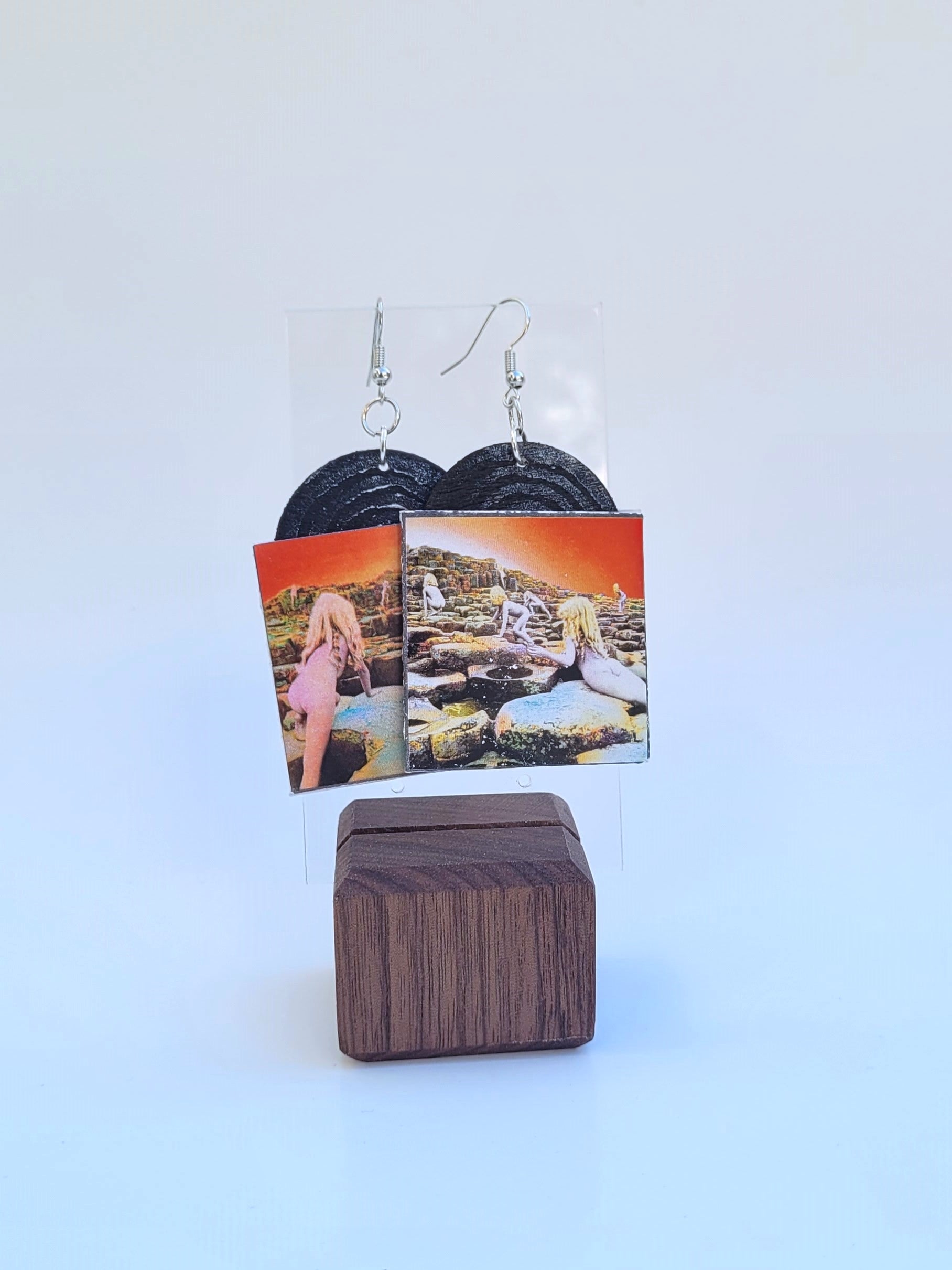 Our sleeves are made with thick glossy card stock. Records made of painted wooden discs make this pair lightweight and easy on your ears! Each record is hand painted and variation is to be expected. Record sleeve dimensions : 1.5 inch by 1.5 inch
